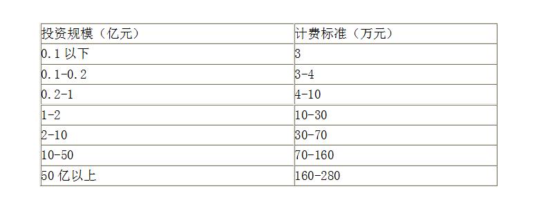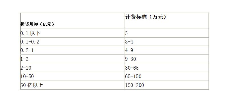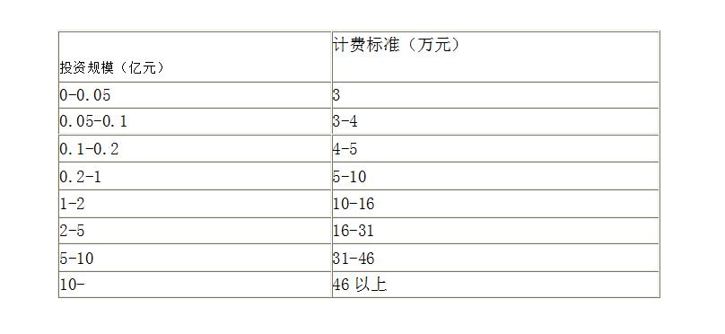注:評價費用根據項目的投資額按計費標準采用直線內插法計算。